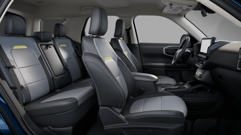 - Experience rugged capability and refined comfort in this 2025 Ford Bronco Sport Badlands. Dressed in striking Velocity Blue Metallic, this 4x4 SUV is built for adventure with a 2.0L EcoBoost engine and 8-speed automatic transmission, delivering the power and confidence you need on or off the road. The Badlands trim features a twin-clutch rear drive unit, Terrain Management System with 7 G.O.A.T. modes, and Trail Control with 1-pedal drive, making it ready for any trail you take on. Durable features like steel bash plates, front recovery hooks, LED headlamps and fog lamps, and black roof rack side rails highlight its adventure-ready design. Inside, youll find comfort meets functionality with Dark Space Gray leather-trimmed seats, heated front seats, and a premium-wrapped heated steering wheel. The rubberized flooring and cargo surfaces, under-seat storage, and cargo management system keep your gear secure and organized. Stay connected with SYNC 4 and a 13.2-inch touchscreen, FordPass Connect, and smart charging USB ports for added convenience. This Bronco Sport Badlands also includes practical upgrades like front and rear splash guards, floor liners, and a cargo matready for any muddy trail or weekend escape. Tough, tech-forward, and unmistakably Bronco, this SUV was built to explore far beyond the pavement.