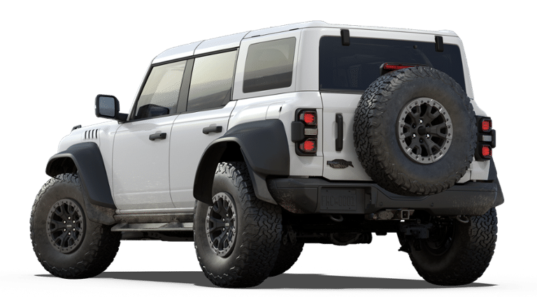 - Experience extreme off-road performance and rugged capability in this 2025 Ford Bronco Raptor. This 4-door 4x4 SUV, finished in Oxford White, is built to conquer any terrain with its 3.0L EcoBoost V6 engine paired to a 10-speed automatic transmission. The HOSS 4.0 suspension system with FOX Live Valve dampers, front and rear locking differentials, and front stabilizer bar disconnect deliver maximum control and confidence on every adventure. Inside, the cabin blends durability with comfort, featuring Onyx and Blue leather-trimmed suede seats, a sport leather steering wheel with paddle shifters, and a digital instrument cluster that keeps you connected and informed. The 12-inch touchscreen with SYNC 4, 360-degree camera, and FordPass Connect add smart technology to your journey. This Bronco Raptor also includes the Lux Package, advanced 4x4 system, and Terrain Management System with G.O.A.T. Modes, allowing you to easily adapt to changing conditions. The body-color hard top, black fender flares, and 17-inch black forged beadlock-capable wheels with massive 37-inch all-terrain tires complete its aggressive stance. With heavy-duty front and rear steel bumpers, full metal bash plates, rock rails with removable running boards, and reinforced swing gate, this Bronco Raptor is engineered to thrive where the pavement ends. Bold, capable, and built for adventurethe 2025 Bronco Raptor is the ultimate expression of off-road dominance.