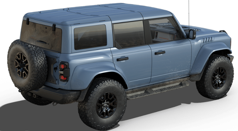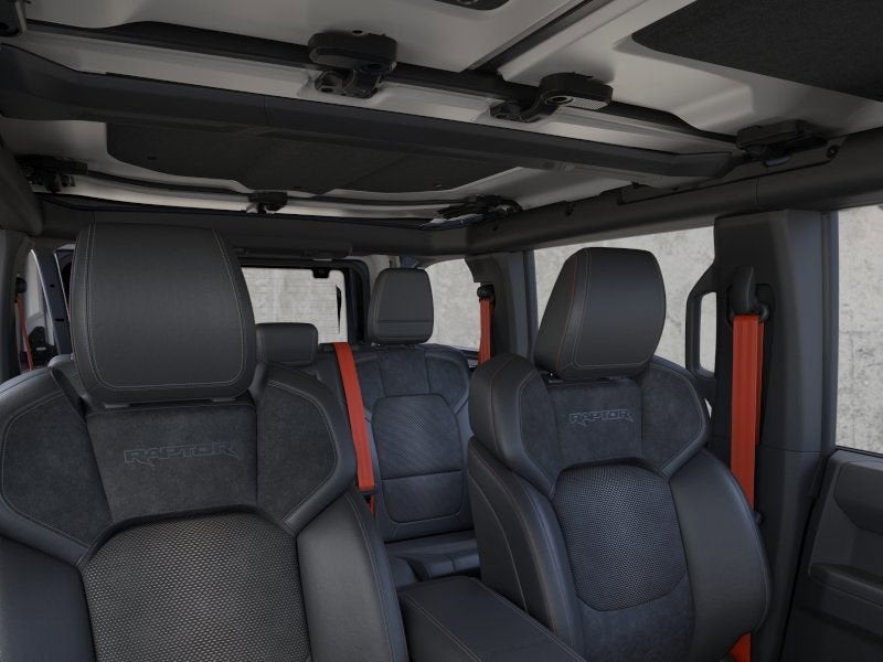 - Built for drivers who demand extreme capability and unmistakable presence, the 2025 Ford Bronco Raptor delivers elite off-road performance with a premium interior to match. Finished in the striking Azure Gray Metallic Tri-Coat, this 4-Door Raptor stands tall on massive 37" all-terrain tires wrapped around 17" black high-gloss painted aluminum wheels. Heavy-duty modular steel bumpers, full-metal bash plates, rock rails with removable running boards, and signature LED lighting showcase the Bronco Raptors rugged design from every angle. Under the hood, the powerful 3.0L EcoBoost V6 pairs with a 10-speed automatic transmission and Fords Advanced 4x4 system, giving you commanding performance on and off the pavement. Front and rear locking differentials, a reinforced swing gate, front stabilizer bar disconnect, and the HOSS 4.0 suspension with FOX Live Valve dampers deliver exceptional control across any terrain. Terrain Management with G.O.A.T. Modes ensures the Bronco Raptor is ready for everything from desert dunes to Michigan winters. Inside, this Raptor blends athletic design with upscale materials, featuring Onyx leather-trimmed and suede seating with optional Code Orange seat belts for a bold performance touch. The Interior Carbon Fiber Package enhances the cabin with premium detail, while the body-color painted hard top and sound-deadening headliner add refinement and reduced cabin noise. A 12-inch center touchscreen, digital instrument cluster, smart-charging USB ports, and the full Lux Package keep you connected and comfortable on every drive. With its combination of race-bred engineering, advanced technology, and head-turning presence, this 2025 Bronco Raptor is purpose-built for adventure while still offering the everyday comfort and convenience drivers love. A true top-tier off-road machine, its ready for anything you throw at it.