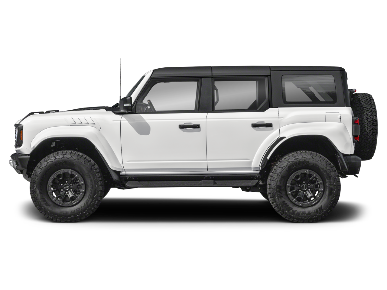 - The 2025 Ford Bronco Raptor is built for extreme off-road performance with rugged style to match. This four-door 4x4 is finished in bold Shelter Green and powered by a 3.0L EcoBoost V6 engine paired with a 10-speed automatic transmission. Inside, the Onyx leather-trimmed and suede seats, accented by Code Orange seat belts and an interior carbon fiber package, bring a premium, performance-inspired feel. The Raptor Black Appearance Package adds 17-inch black forged beadlock-capable wheels, 37-inch all-terrain tires, blackout graphics, and black-painted fender flares. Engineered for adventure, it features advanced 4x4 capability with front and rear locking differentials, a front stabilizer bar disconnect, HOSS 4.0 suspension with FOX Live Valve dampers, and full metal bash plates. Convenience and technology highlights include a 12-inch LCD touchscreen, 360-degree camera, digital instrument cluster, and the LUX Package for added comfort and connectivity. From its heavy-duty modular front bumper with Rigid fog lamps to its reinforced swing gate and rock rails, the Bronco Raptor is designed to conquer any terrain in confidence and style.