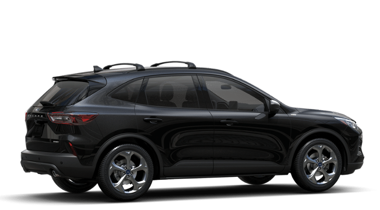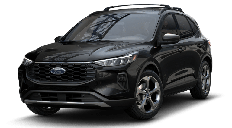 - Experience a bold blend of style, capability, and smart technology in this 2025 Ford Escape ST-Line AWD. Dressed in striking Agate Black Metallic, this SUV stands out with its exclusive ST-Line design elements, including a unique rear spoiler, sporty black mesh grille, and signature red interior stitching. It rides on sleek 18-inch Rock Metallic painted wheels and features roof-rail crossbars for added utility. Under the hood, a responsive 1.5L EcoBoost engine with Auto Start-Stop Technology is paired with an 8-speed automatic transmission, delivering a dynamic and efficient driving experience. Inside, the Ebony interior showcases sport bucket front seats, a flat-bottom steering wheel with red stitching, and a large 13.2-inch touchscreen equipped with Connected Navigation, part of the advanced Tech Package #1. Driver-assist features such as Adaptive Cruise Control, Evasive Steering Assist, Lane Centering, Rear Parking Sensors, and BLIS with Cross-Traffic Alert enhance confidence on the road. Cold weather is no match for the Cold Weather Package, which includes heated front seats, a heated steering wheel, remote start, and heated power mirrors. With its power liftgate, dual-zone automatic climate control, and FordPass Connect, this Escape ST-Line is ready for any adventure with comfort and convenience in mind.
