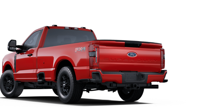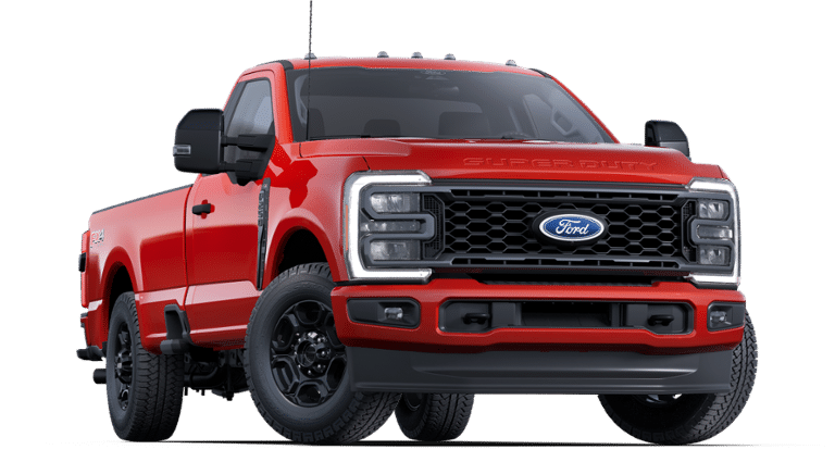 - Conquer tough jobs and challenging terrain with the bold and capable 2025 Ford F-250 Super Duty XL Regular Cab 4x4, finished in a striking Race Red exterior. Powered by a robust 7.3L V8 gas engine paired with a 10-speed TorqShift-G automatic transmission, this heavy-duty pickup delivers impressive performance and towing capability. The FX4 Off-Road Package adds skid plates and enhanced suspension for rugged durability, while the 3.73 electronic-locking rear axle ensures confident traction. This F-250 stands out with the STX Appearance Package, featuring 18" Ebony Black aluminum wheels, all-terrain tires, LED box lighting, rear parking sensors, and a 360-degree camera system for enhanced visibility. Inside, the Medium Dark Slate cloth interior offers a practical and comfortable workspace, complete with a 40/20/40 split front seat, SYNC 4 infotainment with an 8" screen, and remote start. Designed for real-world utility, this truck is equipped with a Snow Plow Prep Package, Roof Clearance Lights, Upfitter Switches, Dual Batteries, and a 410 Amp Dual Alternator. The XL Driver Assist Package adds Blind Spot Information System (BLIS) and other smart safety features for peace of mind on the job or the road. Whether you're working hard or heading off-road, this Super Duty is built to perform and impress.