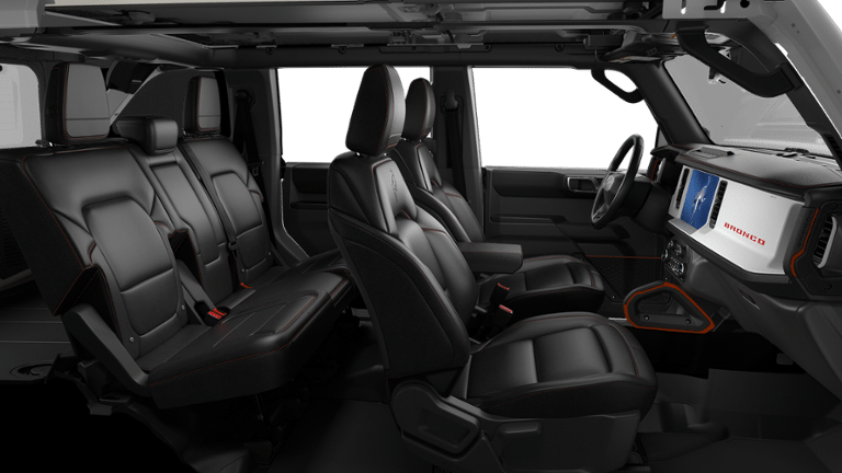 Check out all of the features on this 2026 Ford Bronco Equipment Group 564A Lux Package (Unique Vinyl Bucket Seats and Wheels: 17 Unique Matte Black-Painted Alloy), Ford Connectivity Package (1-Year Included), Trailer Tow Package, 12 Speakers, 4-Wheel Disc Brakes, ABS brakes, Air Conditioning, Alloy wheels, AM/FM radio: SiriusXM with 360L, Auto High-beam Headlights, Auto-dimming Rear-View mirror, Automatic temperature control, Brake assist, Compass, Convertible HardTop, Convertible roof lining, Delay-off headlights, Driver door bin, Driver vanity mirror, Dual front impact airbags, Dual front side impact airbags, Electronic Stability Control, Emergency communication system: 911 Assist, Exterior Parking Camera Rear, Front anti-roll bar, Front Bucket Seats, Front Center Armrest, Front dual zone A/C, Front reading lights, Front Row Top Panels and Door Storage Bags, Front wheel independent suspension, Fully automatic headlights, Glass rear window, Heated door mirrors, Heated front seats, Heated steering wheel, Illuminated entry, Integrated roll-over protection, Leather Shift Knob, Low tire pressure warning, Navigation system: Connected Navigation, Occupant sensing airbag, Outside temperature display, Overhead airbag, Overhead console, Panic alarm, Passenger door bin, Passenger vanity mirror, Power door mirrors, Power steering, Power windows, Radio data system, Rear anti-roll bar, Rear window defroster, Rear window wiper, Remote keyless entry, Security system, SiriusXM with 360L, Speed control, Split folding rear seat, Steering wheel mounted audio controls, SYNC 4, Tachometer, Telescoping steering wheel, Tilt steering wheel, Traction control, Trip computer, Turn signal indicator mirrors, Variably intermittent wipers, and Voltmeter.