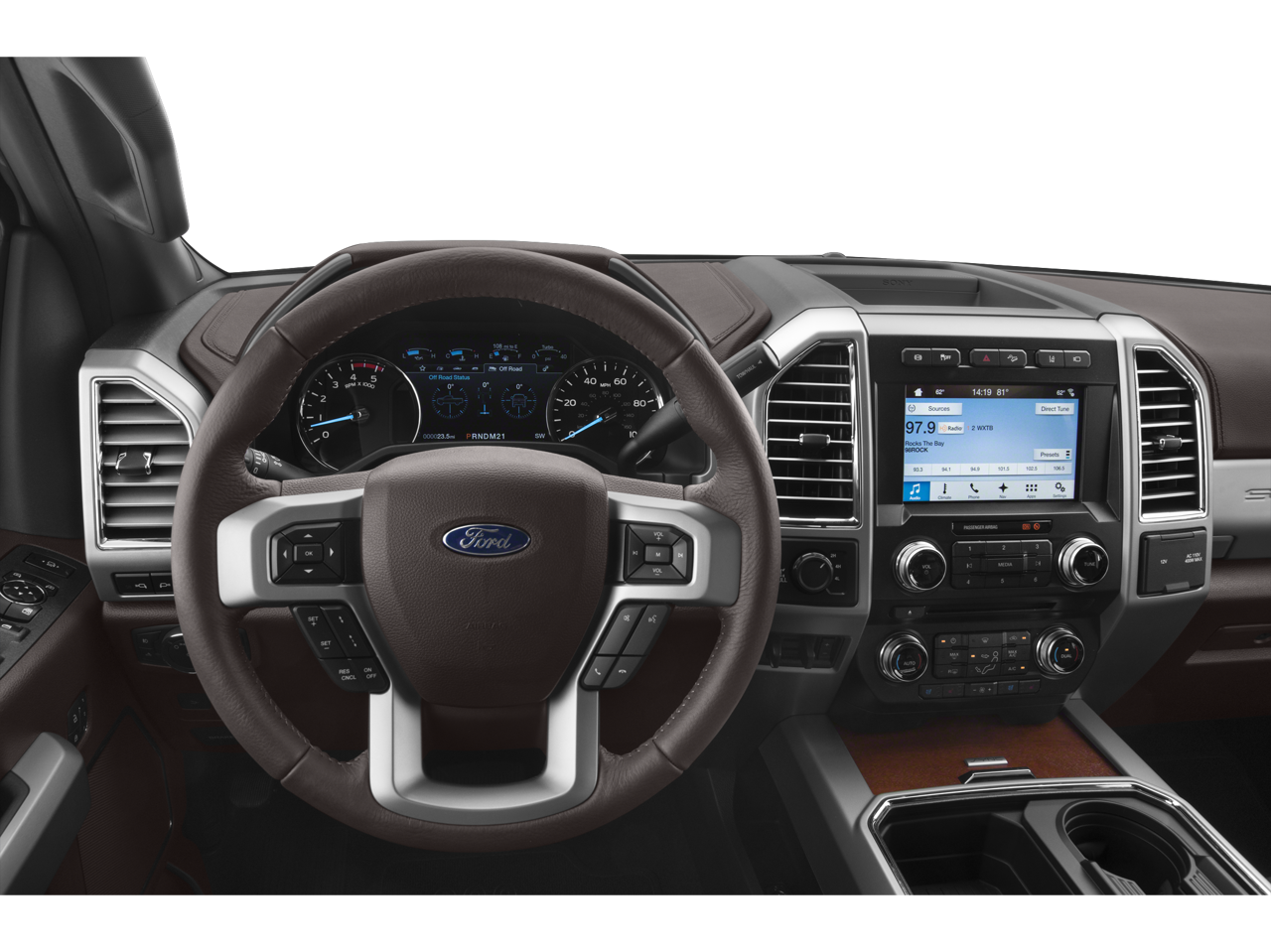 - Unique King Ranch Leather 40/Console/40 Front Seats -inc: Kingsville Antique Affect leather seating surfaces w/matching 60/40 rear bench w/partitioned locking under-seat storage, 12V powerpoint, dual integrated cupholders in armrest, 2 outboard head restraints, 10-way power (includes power lumbar), memory, easy-entry/exit driver's seat and heated/cooled driver and passenger seating